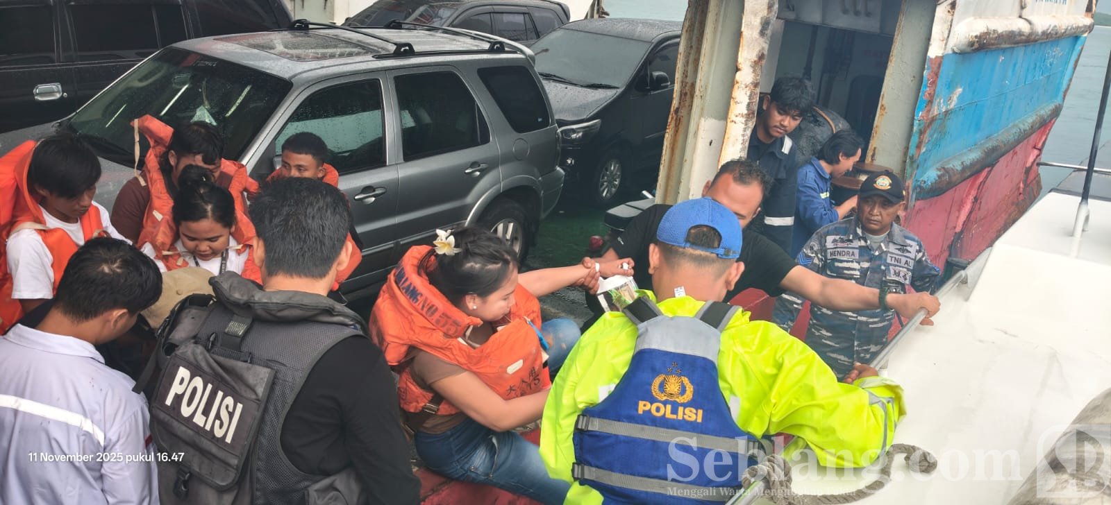Beruntung, proses evakuasi berlangsung lancar meski di tengah kondisi cuaca hujan ringan. Dalam waktu sekitar satu jam, seluruh penumpang dan kendaraan yang diangkut berhasil dievakuasi dengan aman.
