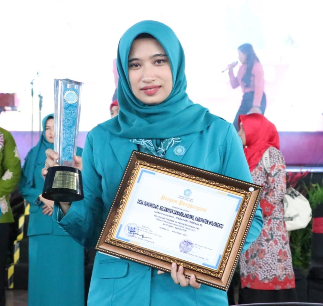 Prestasi penghargaan bergengsi itu diterima langsung oleh Ketua Tim Penggerak Pemberdayaan dan Kesejahteraan Keluarga atau TP PKK Kabupaten Mojokerto Hj. Shofiya Hanak Al Barra dari Ketua TP PKK Jawa Timur, Arumi Bachsin Emil Dardak pada saat acara puncak peringatan Bulan Bhakti Gotong Royong Masyarakat (BBGRM) XIX dan Hari Kesatuan Gerak PKK ke-50, Senin Kemarin (28/11) di GOR PKPSO Kabupaten Jember.