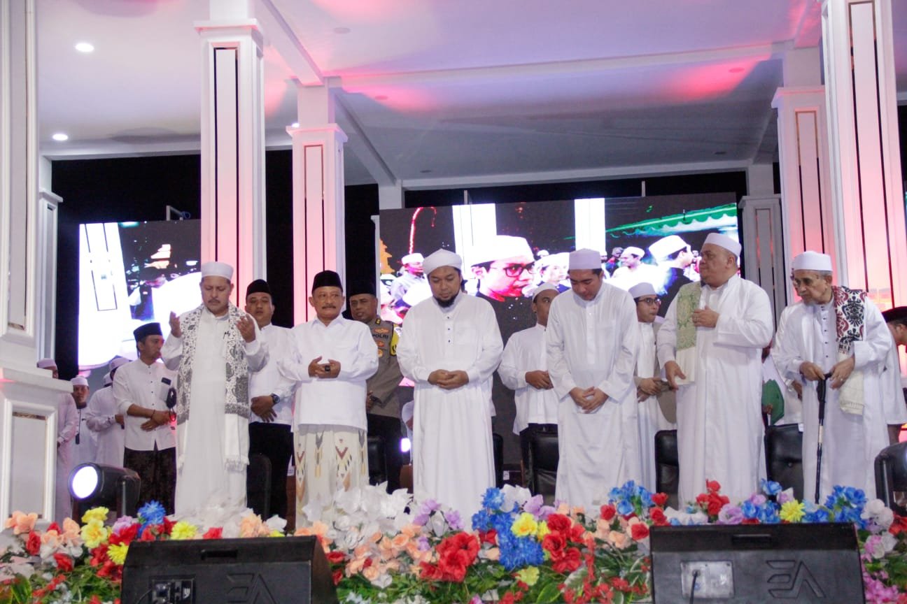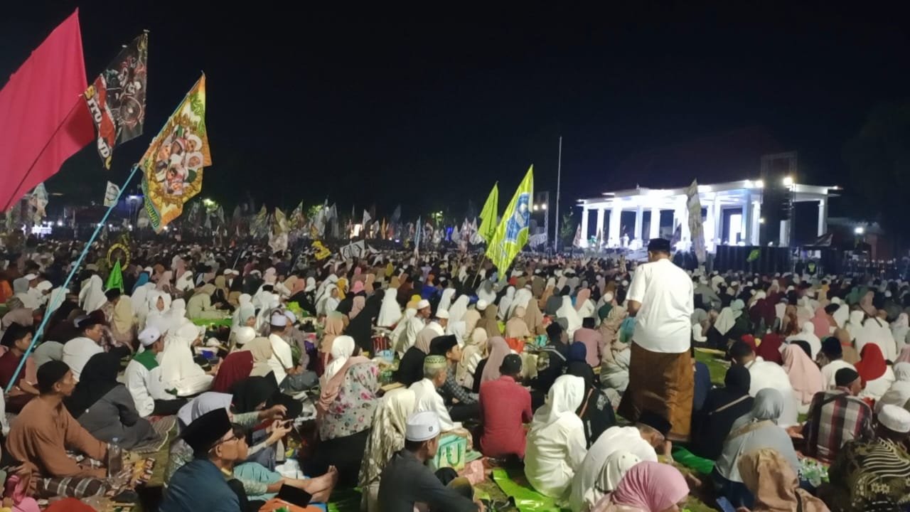 Ikut hadir puluhan ribu orang menghadiri Pengajian 2 Mejelis 1 Cinta bertajuk “Shalawat Kebangsaan” menyambut Bulan Suci Ramadhan 1445 Hijriah di Alun-Alun Kabupaten Situbondo, Jawa Timur, Sabtu (2/3/2024) malam.