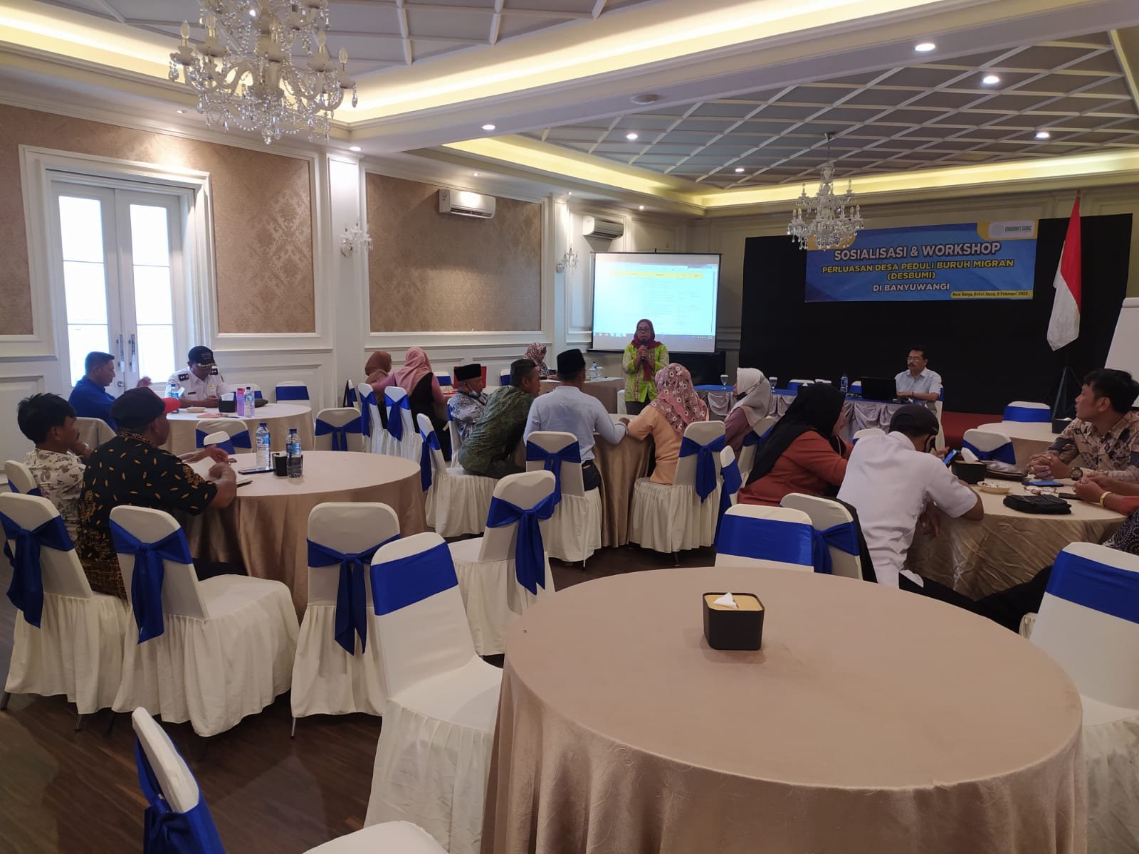 Banyuwangi, Seblang.com – Dalam rangka memastikan pekerja migran Indonesia (PMI) asal Banyuwangi mendapatkan perlindungan sejak dari desa, Migrant CARE Banyuwangi menggelar program Sosialisasi dan Workshop Perluasan Desa Peduli Buruh Migran (Desbumi) di Ruang Gajah Oling, New Surya Hotel Jajag-Gambiran, Banyuwangi pada Rabu (08/02/ 2023)