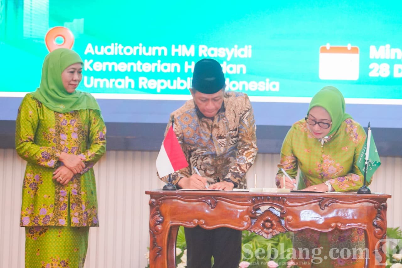 Surabaya, seblang.com – Ketua Umum Dewan Pembina PP Muslimat NU, Khofifah Indar Parawansa, menyaksikan penandatanganan Nota Kesepahaman (MoU) tentang Sinergitas Perlindungan dan Pengelolaan Lingkungan Hidup antara Pimpinan Pusat dengan Republik Indonesia. Penandatanganan berlangsung di Auditorium KH M. Rasjidi, Kementerian Agama RI, Jakarta, Minggu (28/12/2025).