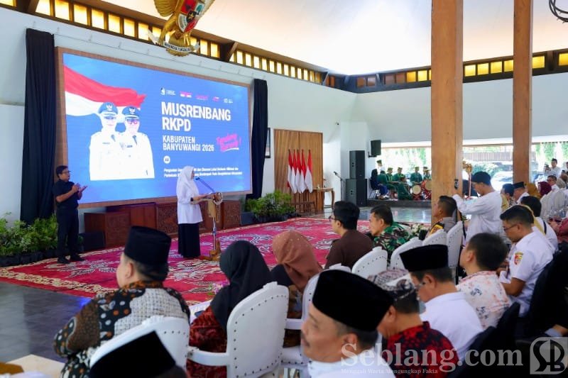 Banyuwangi, seblang.com – Bupati Banyuwangi, Ipuk Fiestiandani, memaparkan delapan prioritas pembangunan daerah dalam Musyawarah Perencanaan Pembangunan (Musrenbang) Rencana Kerja Pemerintah Daerah (RKPD) 2027 di Pendopo Sabha Swagata Blambangan, Rabu (4/3/2026).