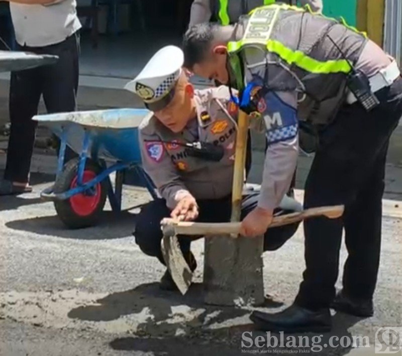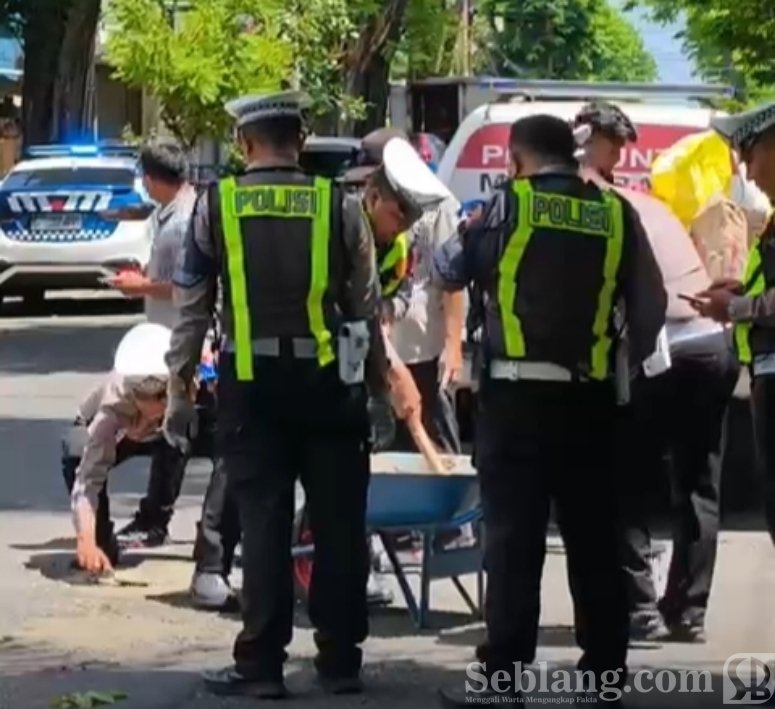 Banyuwangi, seblang.com – Polisi tak mau tinggal diam. Jalan berlubang yang mengancam keselamatan pengguna jalan kini ikut ditangani aparat kepolisian.