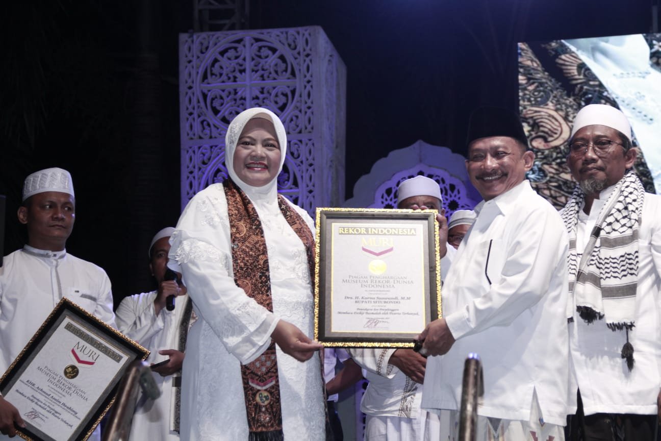 Piagam penghargaan Rekor Muri diberikan kepada pemrakarsa dan penyelenggara, yakni Bupati Situbondo Karna Suswandi dan Pengasuh Pondok Pesantren Salafiyah Syafi’iyah Sukorejo K.H.R. Achmad Azaim Ibrahimy.