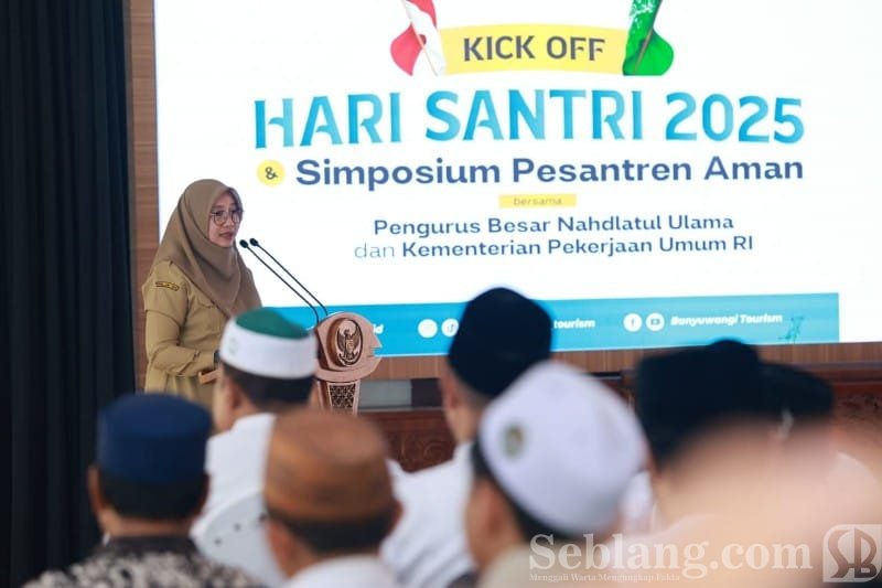 Banyuwangi, seblang.com – Peringatan Hari Santri Nasional (HSN) 2025 di Banyuwangi resmi dimulai dengan peluncuran program inovatif bertajuk “Pesantren Aman”. Acara Kick Off HSN 2025 ini digelar di Pendopo Sabha Swagata Blambangan, Senin (20/10/2025), dan melibatkan kolaborasi antara Pemerintah Kabupaten Banyuwangi, PCNU Banyuwangi, serta Kementerian PUPR.
