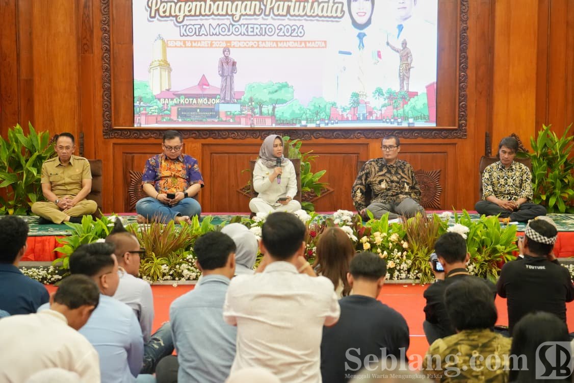 Kota Mojokerto, seblang.com – Pemerintah Kota Mojokerto terus mendorong pengembangan sektor pariwisata sebagai salah satu pengungkit pertumbuhan ekonomi daerah. Hal tersebut disampaikan Wali Kota Mojokerto, Ika Puspitasari, saat Sarasehan Pengembangan Pariwisata di Ruang Sabha Mandala Madya, Balai Kota Mojokerto, Senin (16/3).