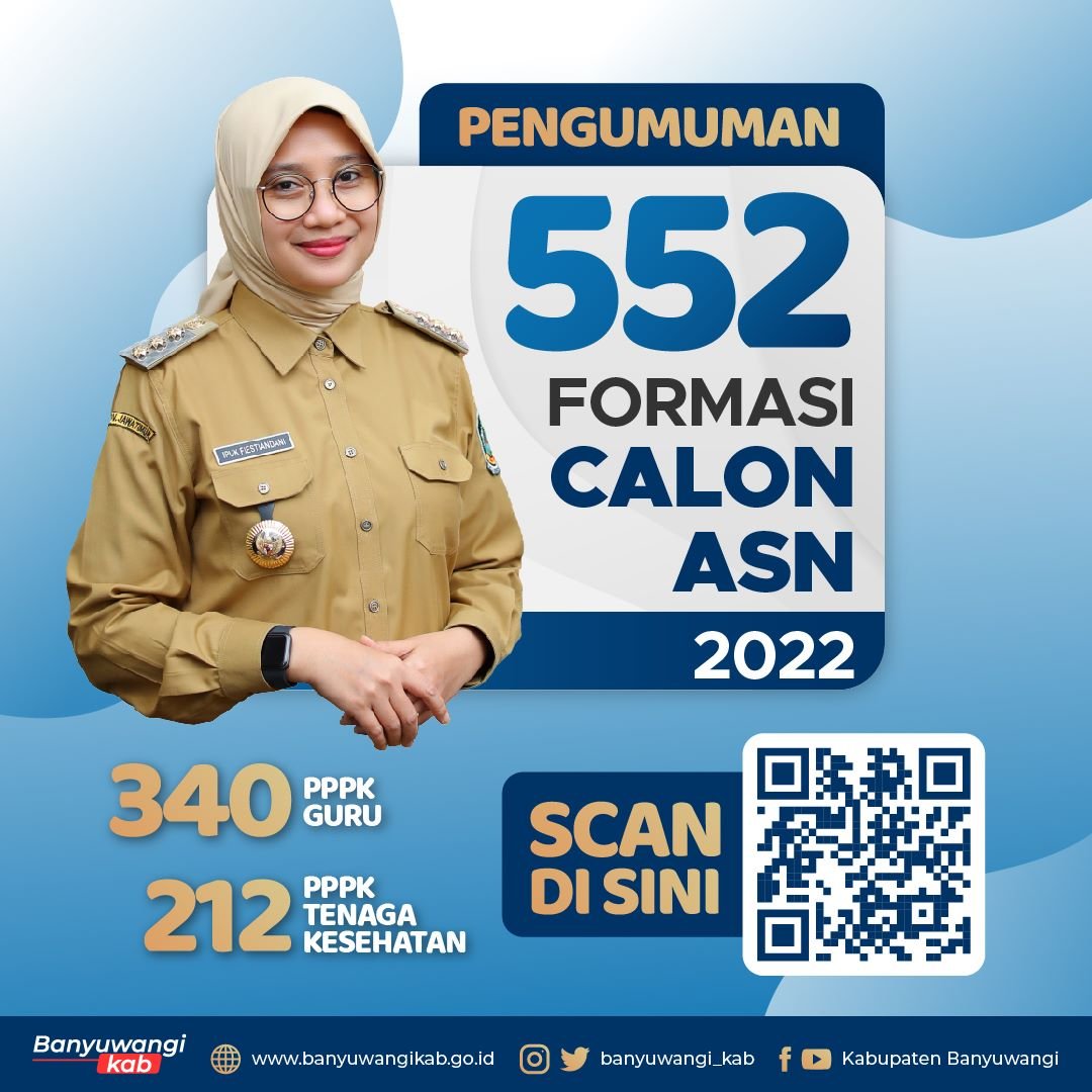 “Kami telah menerima petunjuk teknis penerimaan seleksi PPPK 2022. Kali ini Banyuwangi mendapat kuota 552 formasi. Terdiri dari 340 formasi guru dan 212 tenaga kesehatan” kata Bupati Banyuwangi, Ipuk Fiestiandani
