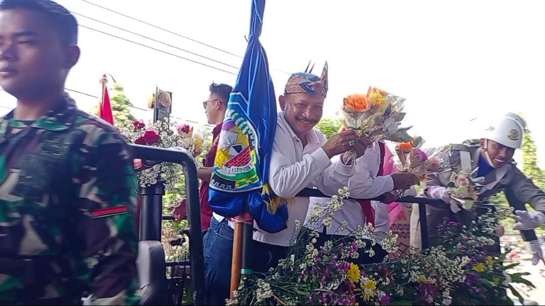 Bupati Karna Suswandi bersama Wakil Bupati Situbondo Nyi Khoirani saat iring iringan menaiki mobil melambaikan tangannya sepanjang jalan mulai dari Kecamatan Banyuglugur sampai Kecamatan Banyuputih Kabupaten Situbondo, dan memberikan bunga kepada masyarakat yang menyambut sebagai bentuk kecintaan Bung Karna kepada seluruh elemen masyarakat Situbondo.