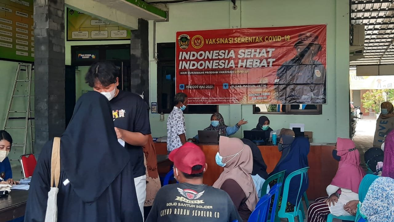 Madiun, seblang.com – Dalam rangka membantu percepatan vaksinasi primer dan booster, Badan lntelijen Negara Daerah Jawa Timur ( Binda Jatim ) kembali menggandeng Dinas Kesehatan Kabupaten Madiun, melaksanakan vaksinasi dengan mengambil tempat di UPT Puskesmas Krebet, Dusun 2 Krebet, Kecamatan Pilang Kenceng, Kabupaten Madiun.