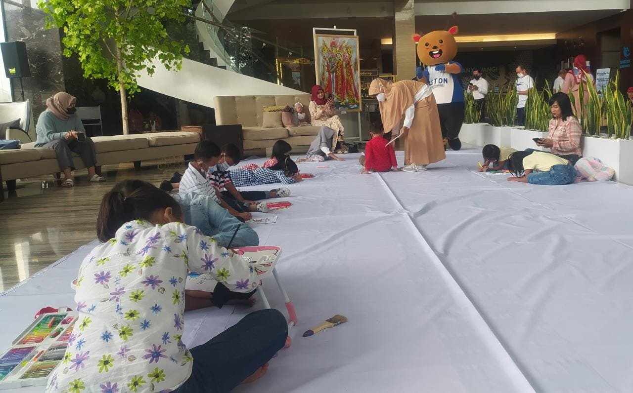 Bertempat di area lobby hotel, kegiatan ini diikuti sekitar 20 anak berbagai usia. Mereka tampak antusias mewarnai gambar Mr. Rubi, Maskot Aston Banyuwangi.