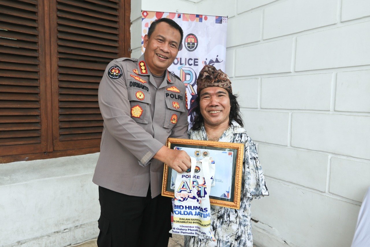 Kabid Humas Polda Jatim Kombes Pol Dirmanto menegaskan, dalam peringatan hari Disabilitas Internasional tahun ini, Bid Humas Polda Jatim sengaja mengundang perwakilan dua seniman difabel, untuk berkarya secara langsung melukis on the spot di Balai Pemuda Surabaya.