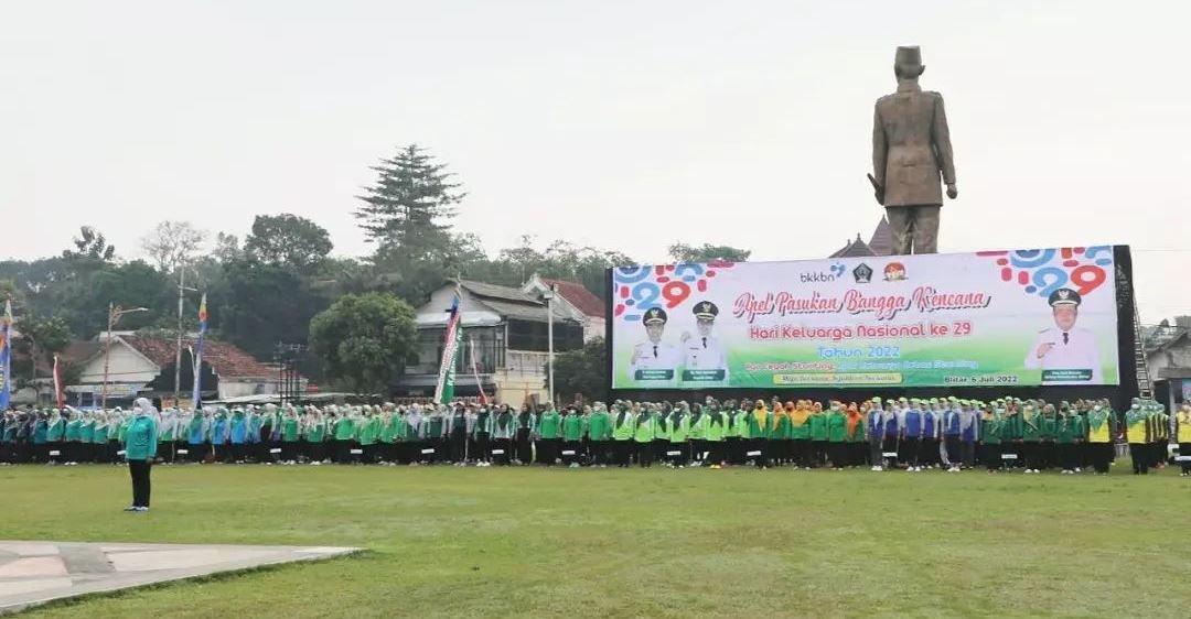 Blitar, seblang.com – Pemerintah Kabupaten Blitar melalui Dinas PPKBP3A menggelar apel Pasukan Bangga Kencana di Aloon-aloon Kanigoro pada Rabu, (06/7/2022).