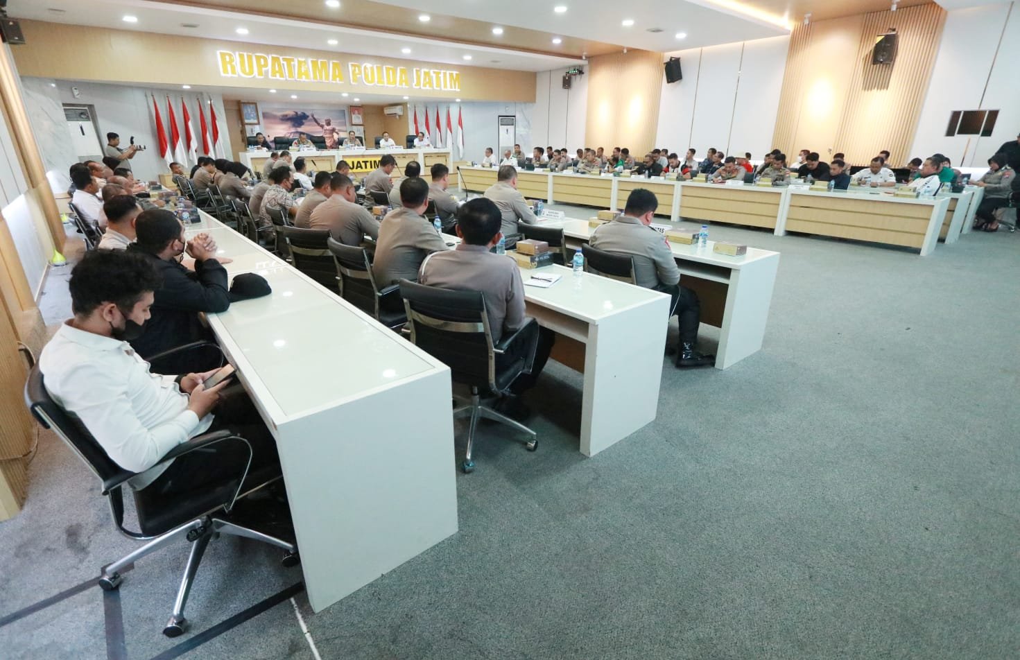 Surabaya, seblang.com – Persiapan pengamanan kompetisi BRI Liga 1 musim 2022/2023 putaran kedua, pihak Polda Jawa Timur telah menggelar rapat koordinasi ( rakor) di Rupatama Polda Jatim kemarin Rabu (11/1/23).