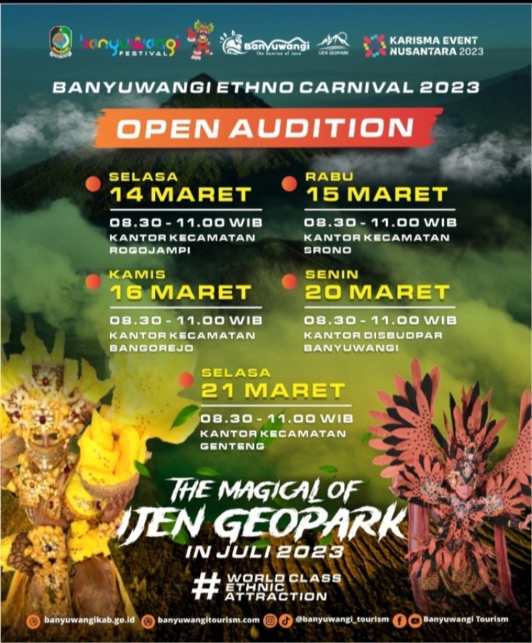 Senin 20 Maret 2023 Pukul 08.30 – 11.00 WIB di Kantor Disbudpar Banyuwangi.