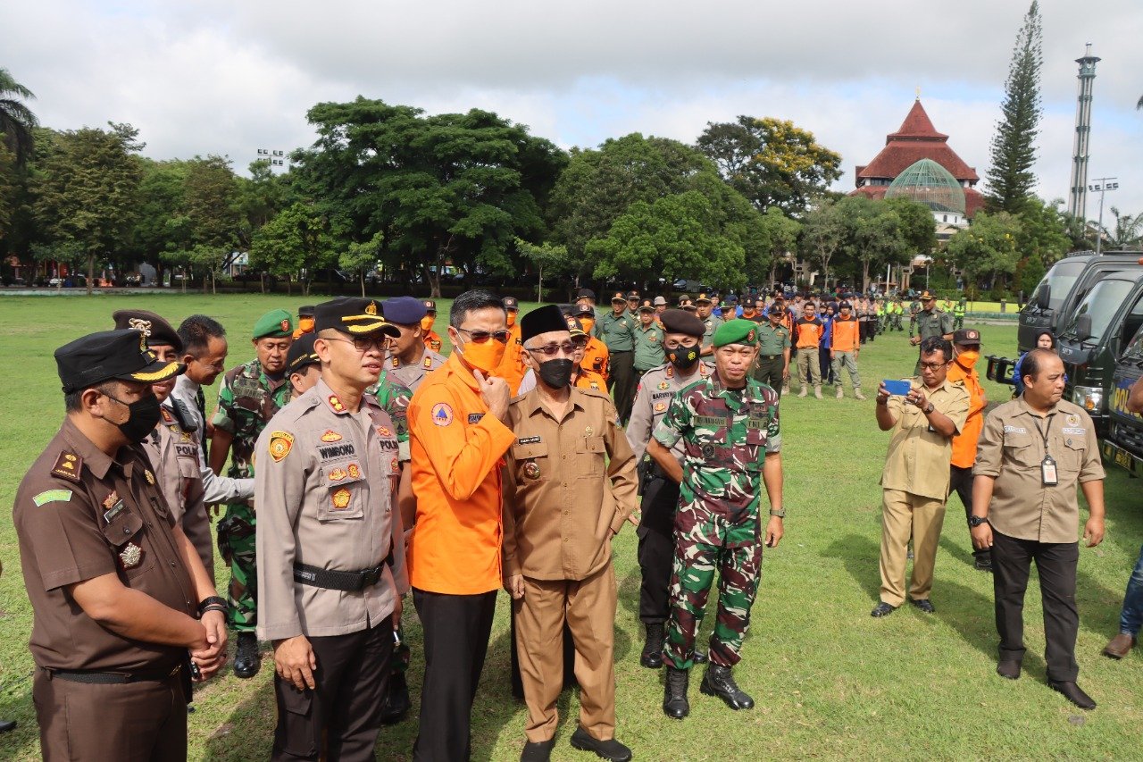Usai pelaksanaan Apel Gabungan Kesiapsiagaan Bencana Alam,Bupati, Kapolres Bondowoso bersama Forkopimda melakukan pengecekan kesiapan para personel, kendaraan, peralatan, dan dapur umum.