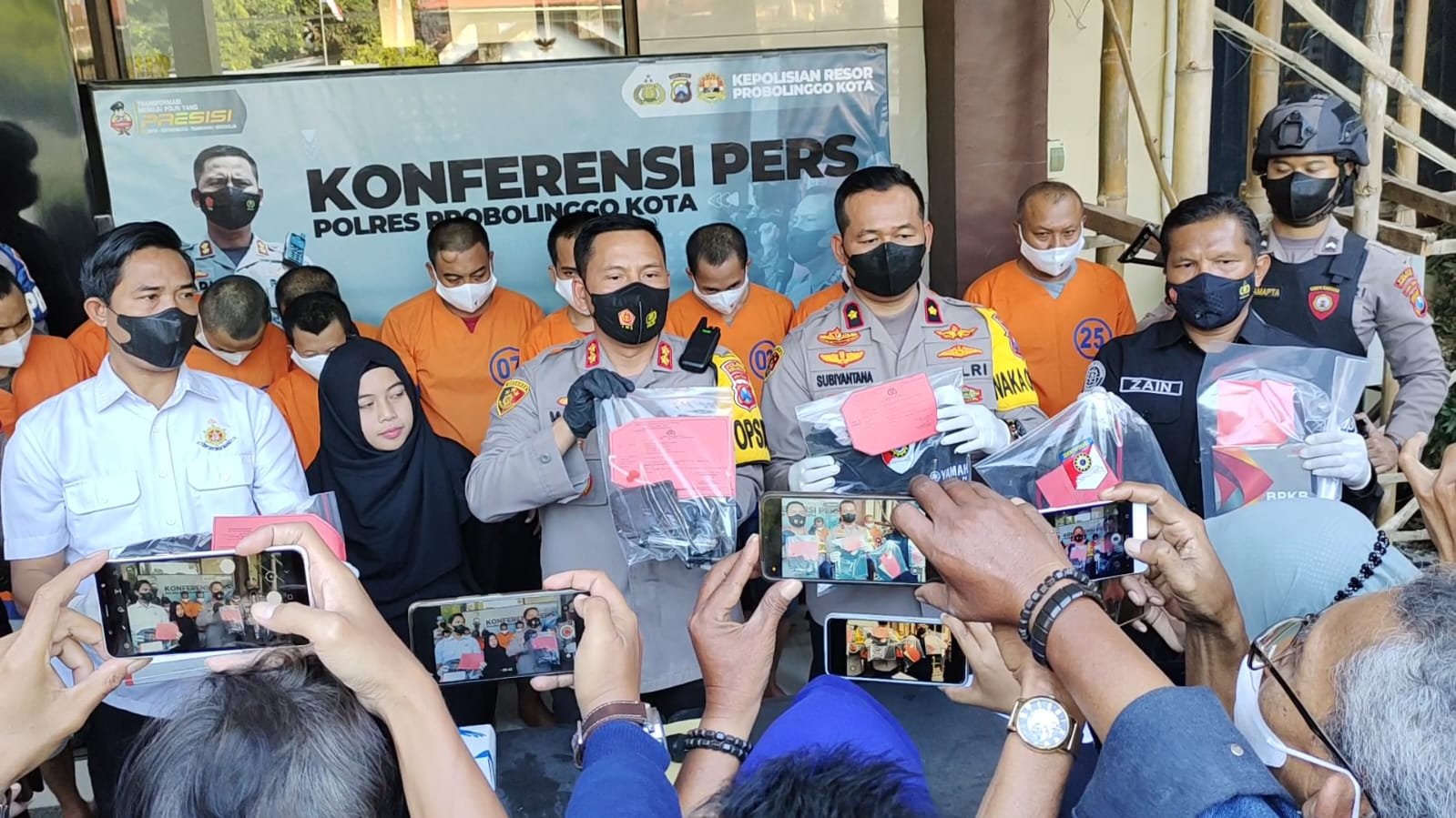Kapolres Probolinggo Kota AKBP Wadi Sa’bani S.H.,S.I.K. didampingi oleh Wakapolres Kompol Subiyantana S.H.,M.H. dan Kasat Reskrim AKP Jamal saat pers rilis. Ia menegaskan pihaknya tidak akan pernah memberikan ruang gerak bagi para pelaku tindak kejahatan.