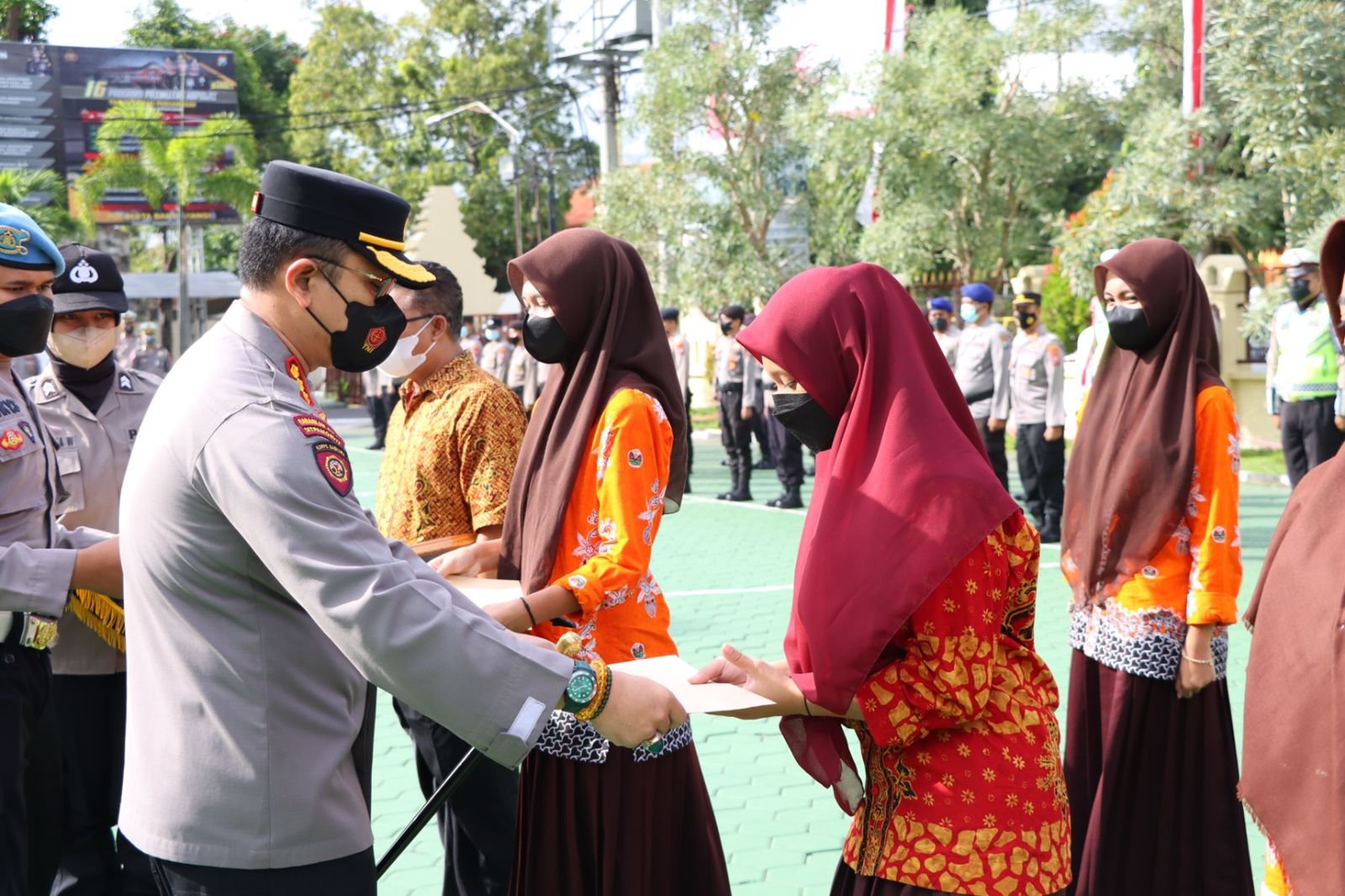 Penghargaan tersebut, diberikan langsung oleh Kapolresta Banyuwangi, Kombes Pol Deddy Foury Millewa saat menggelar apel jam pimpinan .