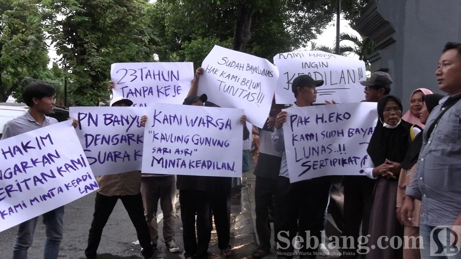 Banyuwangi, seblang.com — Ruang sidang Pengadilan Negeri (PN) Banyuwangi, Kamis (8/1/2026) sore, menjadi saksi terbukanya persoalan panjang sengketa tanah Kavling Gunungsari Asri. Dalam sidang lanjutan gugatan perdata yang diajukan 38 warga pembeli kavling, terungkap fakta mencengangkan: dari total 99 kavling yang telah diperjualbelikan, sebanyak 94 bidang tanah hingga kini belum bersertifikat, meski sebagian besar telah dibayar lunas sejak belasan hingga puluhan tahun lalu.