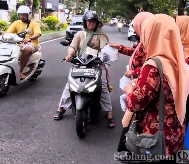 Banyuwangi, seblang.com — Dharma Wanita Persatuan (DWP) Unit Pelaksana Teknis Pengelolaan Prasarana Perhubungan Lalu Lintas dan Angkutan Jalan (UPT P3 LLAJ) Banyuwangi membagikan takjil kepada pengguna jalan yang melintas di depan kantor UPT setempat, Minggu (8/3/2026) sore.