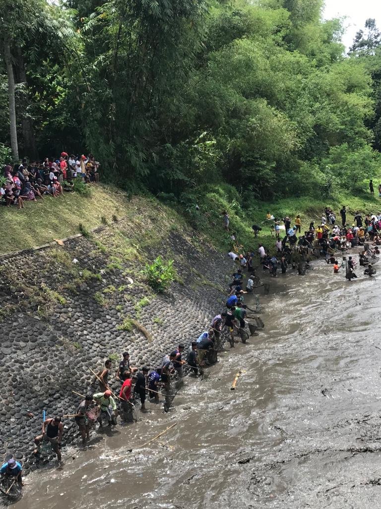 Bukan tanpa alasan, warga yang datang dari berbagai penjuru wilayah Banyuwangi tersebut sengaja datang karena Dam Singir sedang dikeringkan yang bertujuan agar endapan lumpurnya berkurang