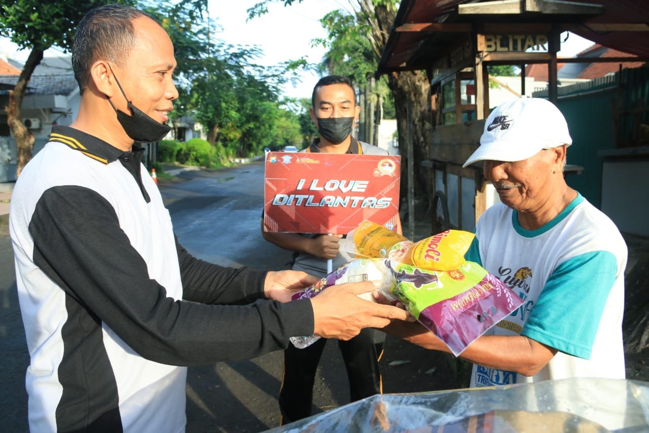 Mereka berjalan sembari membawa sembako berupa beras dan minyak goreng, untuk dibagikan kepada masyarakat yang membutuhkan, diantaranya tukang becak, tukang sapu jalan, bahkan masyarakat difabel yang sedang melintas juga diberi sembako.