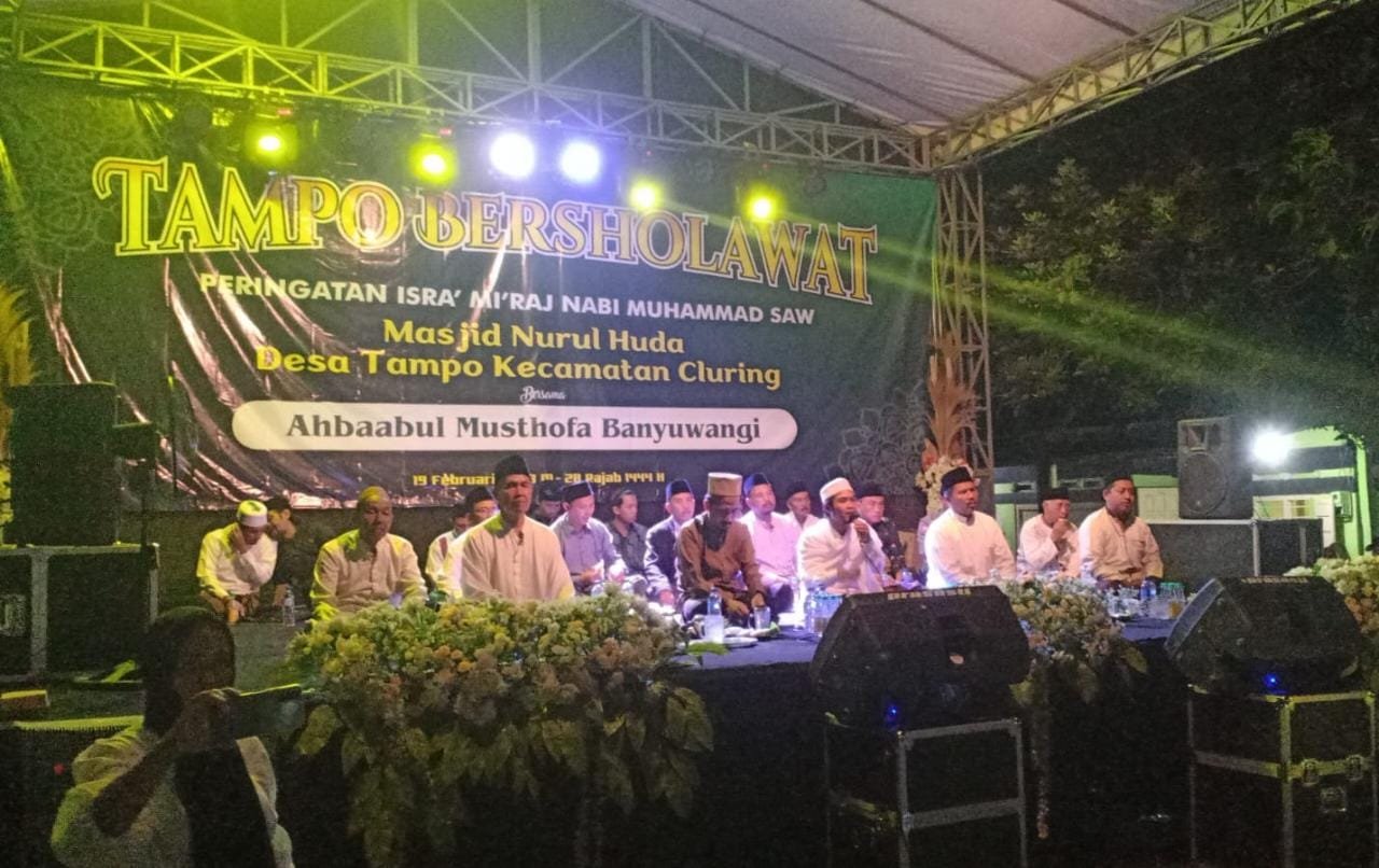 Jamaah yang hadir, seluruhnya melantunkan sholawat nabi diiringi alunan musik islami Al-Banjari Ahbabul Mustofa dari Banyuwangi. Dipimpin Gus Akbar Baihaqi dari Desa Rejoagung, Kecamatan Srono. Ratusan panji – panji kebesaran Islam pun berkibar mengiringi lantunan sholawat yang dipanjatkan.