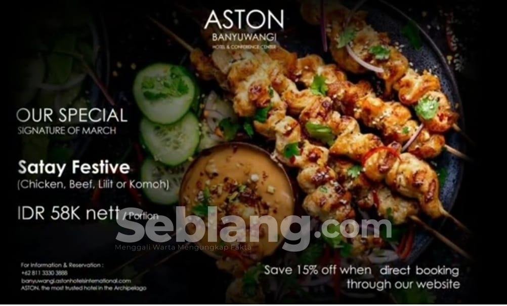 Banyuwangi, seblang.com – Aston Banyuwangi Hotel and Conference Center mempersembahkan Satay Festive di bulan Maret 2022 ini.