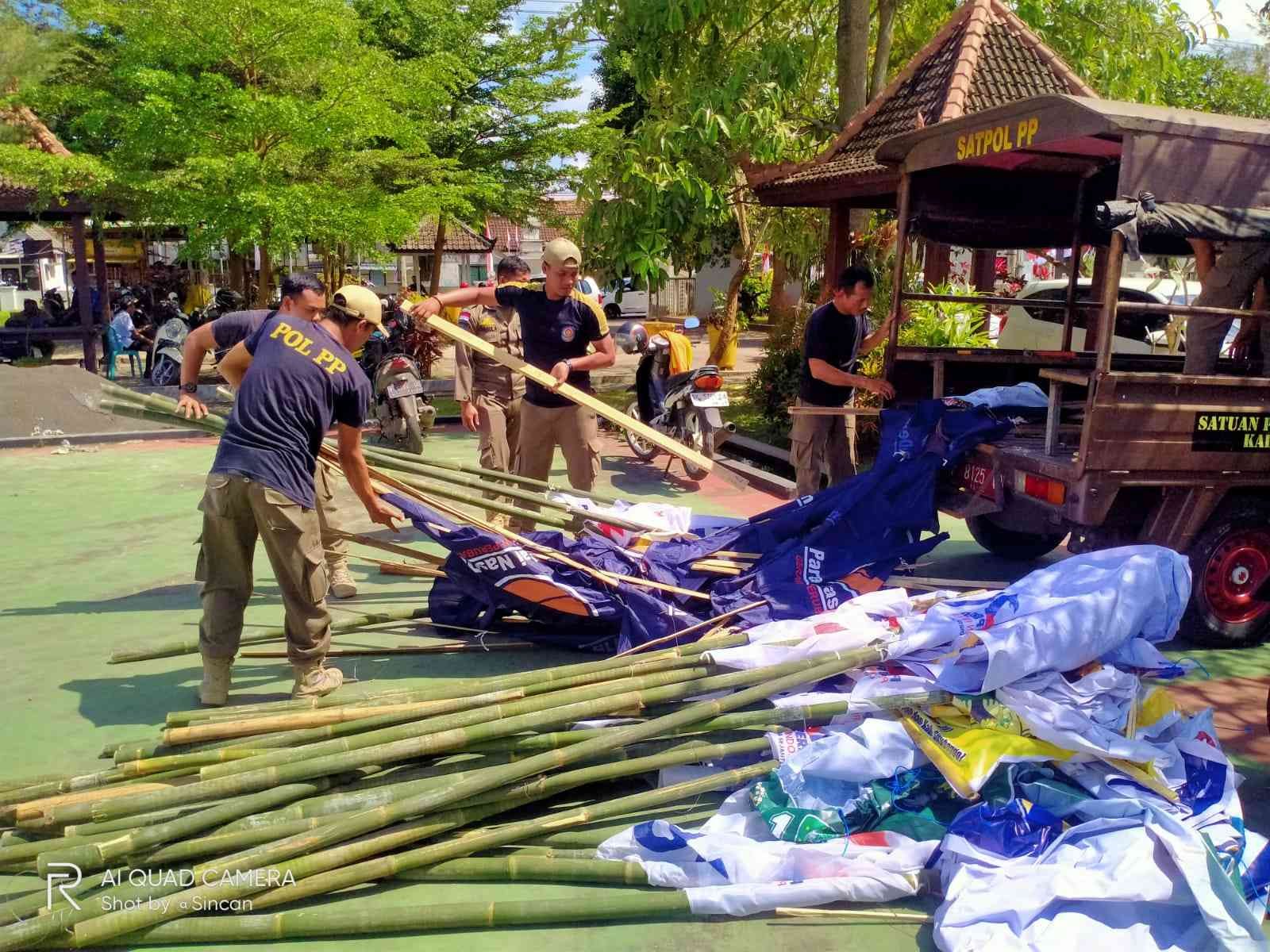 Dalam operasi kali ini Satpol PP Kecamatan Genteng mengamankan 30 baliho berukuran besar dan 200 bendera sejumlah partai politik yang dibongkar. Semua barang itu, dibawa ke kantor Satpol PP BKO V Kecamatan Genteng.
