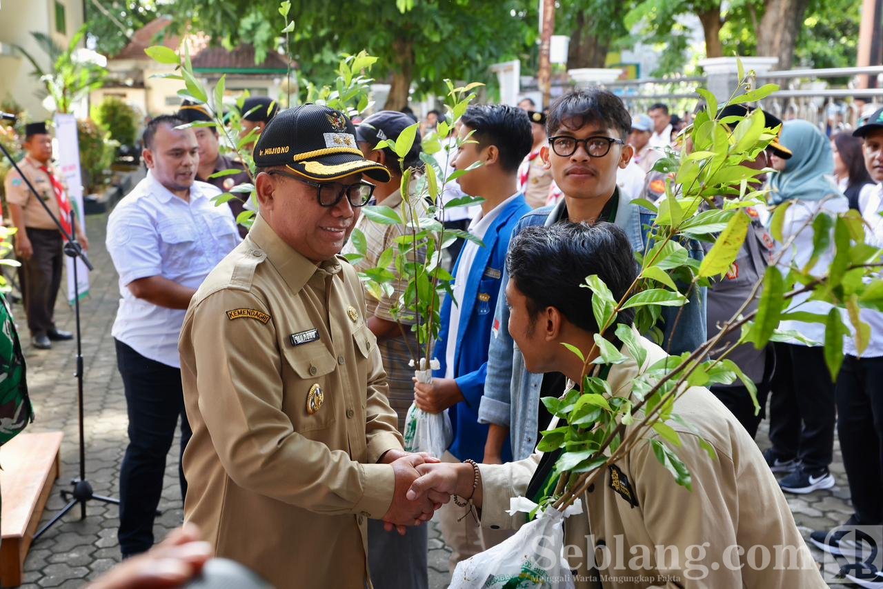 Banyuwangi, seblang.com — Pemerintah Kabupaten Banyuwangi bersama Perum Perhutani KPH Banyuwangi Raya membagikan ribuan bibit pohon gratis kepada masyarakat dalam gerakan Sedekah Oksigen, Senin (5/1/2026).