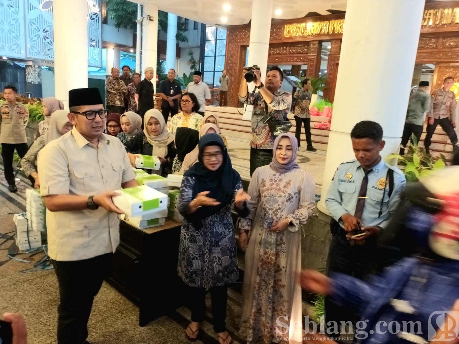 Surabaya, seblang.com – Pemerintah Provinsi Jawa Timur melalui Sekretariat DPRD Jawa Timur menggelar aksi berbagi takjil dalam rangka menyemarakkan Ramadan 1447 H. Sebanyak 1.500 paket takjil dibagikan kepada warga yang melintas di depan Kantor DPRD Provinsi Jawa Timur, Jumat (27/2/2026), menjelang waktu berbuka puasa.