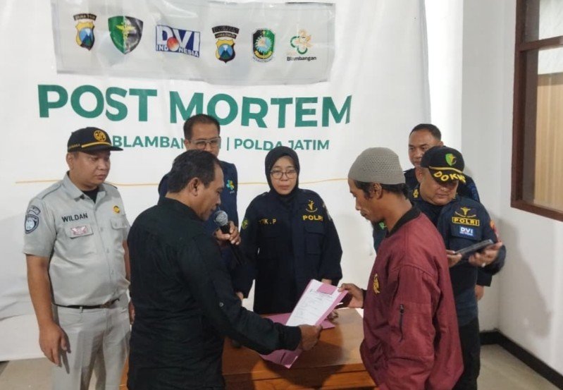 “Hasil pemeriksaan primer DNA terkonfirmasi 100 persen atas nama Edi Purwanto,” jelas Kaur Doksik Subiddokpol Biddokkes Polda Jatim, Pembina Satu dr. Tutik Purwanti, saat konferensi pers di RSUD Blambangan, Sabtu malam (16/8/2025).