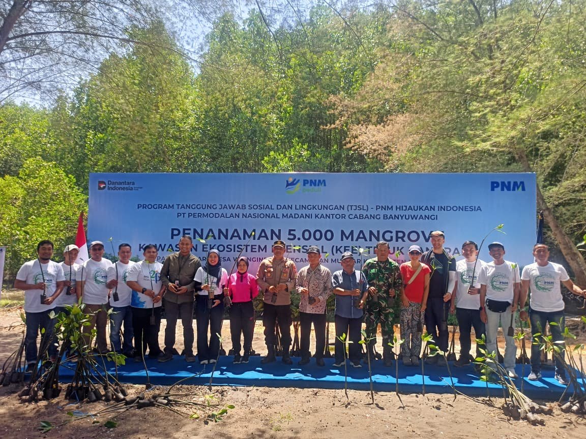 Kegiatan ini menjadi bagian dari Program Tanggung Jawab Sosial dan Lingkungan (TJSL) sekaligus mendukung langkah pemerintah dalam mencegah abrasi pantai. Aksi penanaman dilakukan bersama Forpimka Muncar, OJK, nelayan, masyarakat sekitar, hingga nasabah PNM dengan semangat gotong royong menjaga pesisir Banyuwangi.