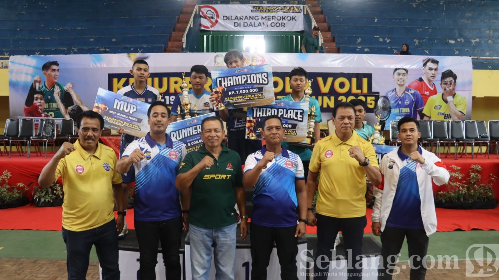 Banyuwangi, seblang.com– Tim bola voli Putri Lare Osing Banyuwangi tampil sebagai juara IV dalam Gelaran Kejuaraan Provinsi (Kejurprov) Jawa Timur (Jatim) Bola Voli Indoor U-19 Tahun 2025 resmi berakhir dengan penyerahan thropy para juara di GOR Tawangalun Banyuwangi, Minggu (2/11/2025).