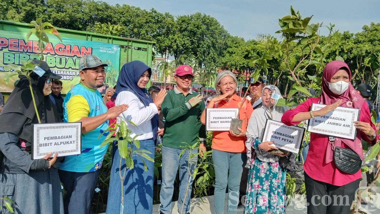 Wakil Bupati Situbondo, Ulfiya, secara simbolis menyerahkan bibit buah kepada masyarakat. Ia berharap program ini memberikan manfaat ganda bagi warga.