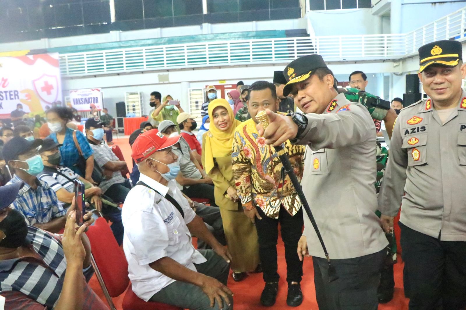 Dalam rangka meningkatkan imunitas guna pencegahan penyebaran covid-19, Kapolda Jatim Irjen Pol Toni Harmanto bersama Forkopimda Jatim melakukan penyaluran vaksinasi kepada masyarakat Jawa Timur, seperti yang dilakukan di Kabupaten Gresik ini.