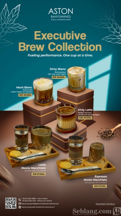 Menanggapi tren tersebut, Aston Banyuwangi Hotel & Conference Center menghadirkan inovasi terbaru melalui Executive Brew Collection, yaitu paket menu olahan kopi dengan karakter rasa khas dan berbeda.