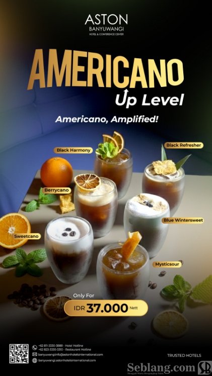 Tak hanya itu, Aston Banyuwangi juga menghadirkan promo bertajuk “Americano Up Level”, yang menawarkan berbagai varian inovatif dari kopi Americano, seperti Black Harmony, Sweetcano, Black Refresher, Blue Wintersweet, dan Mystic Sour. Seluruh varian ini dibanderol dengan harga Rp37.000.