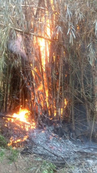 Api cepat membesar karena kondisi bambu yang kering di awal musim kemarau. Lokasi kejadian yang berada dekat dengan rumah warga membuat warga khawatir api merembet.