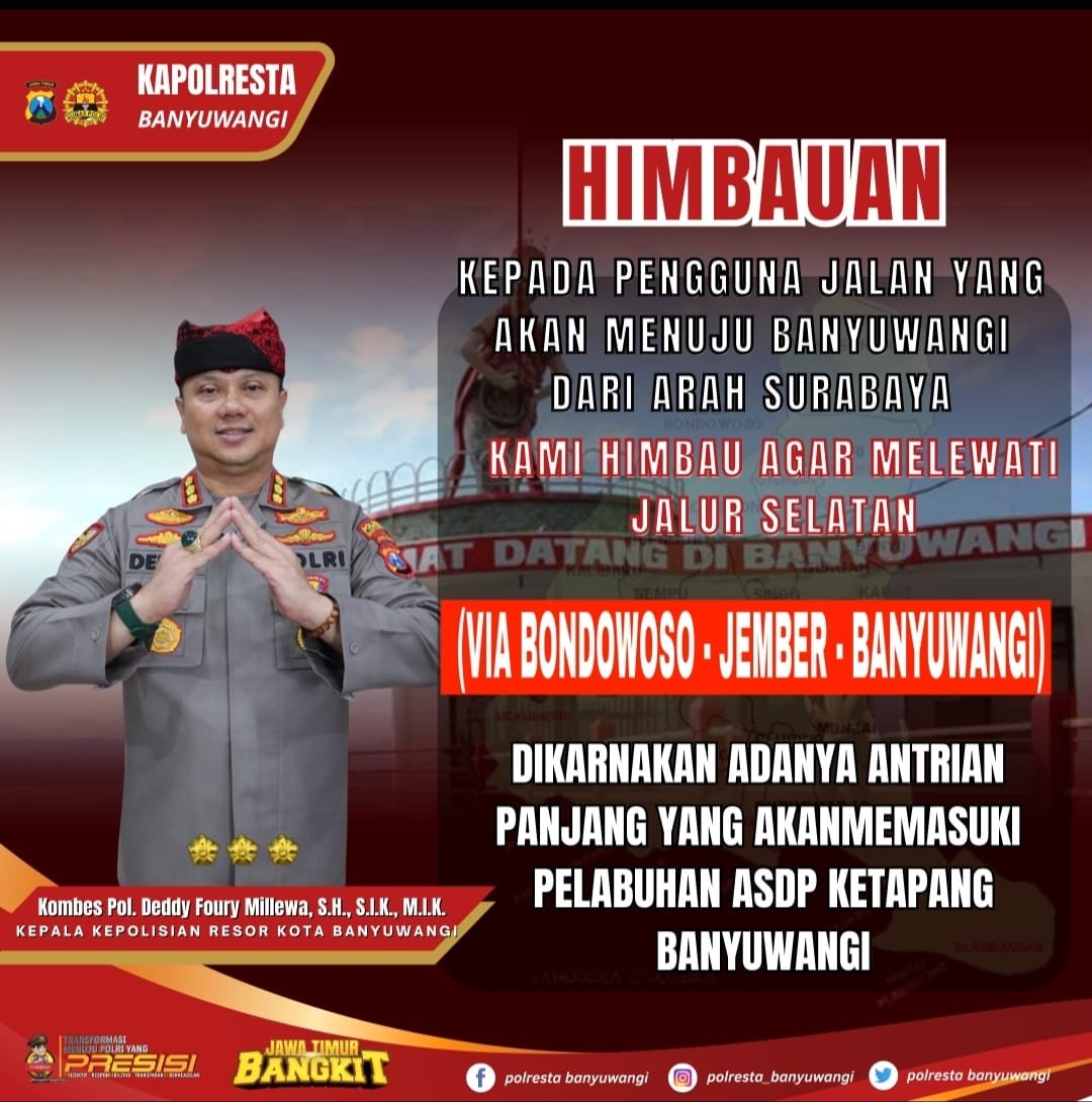 Kapolresta Banyuwangi Kombes Pol DeddynFoury Millewa melalui Kasat Lantas Kompol Randy Asdar berharap imbauan itu bisa mengurangi antrean yang sedang terjadi di sepanjang Jalur Pantura, yang mengular hingga patung Gandrung Watudodol di kawasan Bangsring