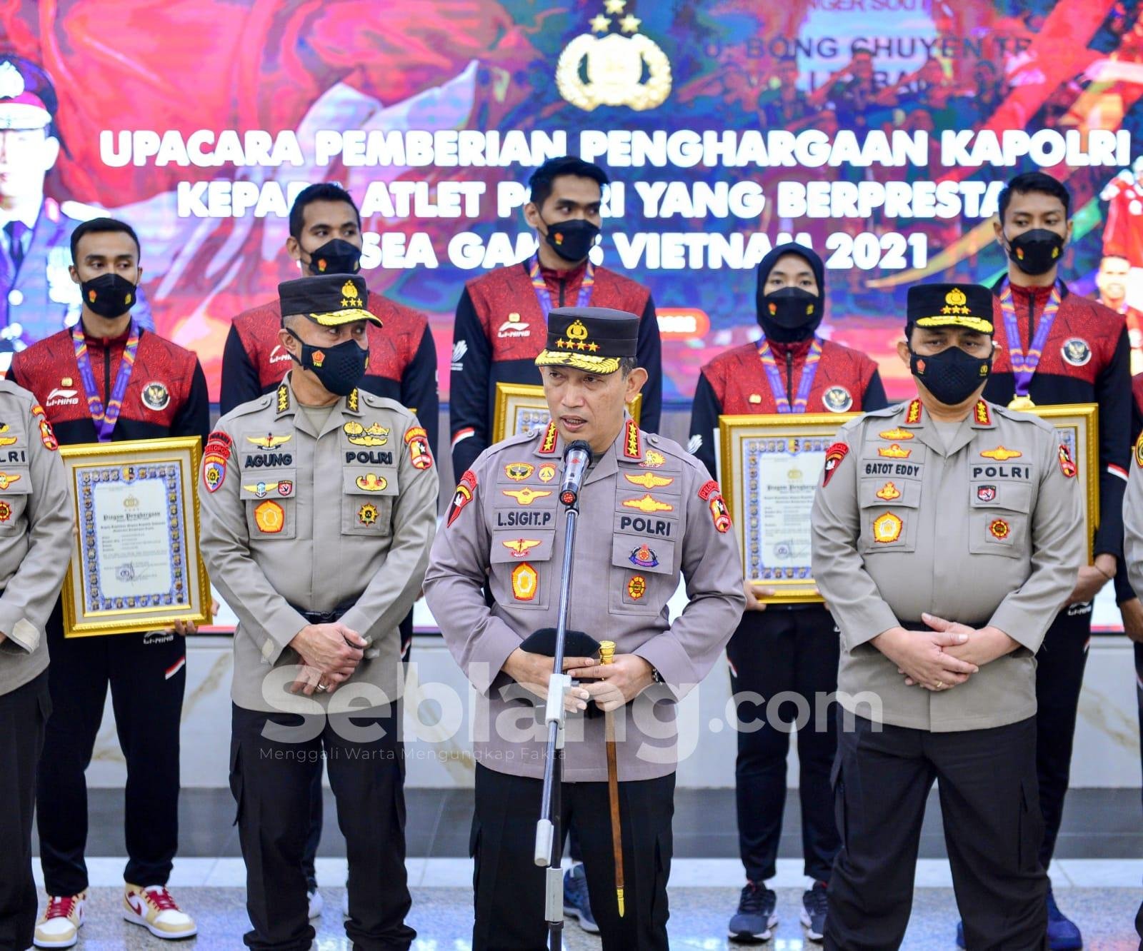 Jakarta, seblang.com – Kapolri Jenderal Listyo Sigit Prabowo memberikan penghargaan sebagai bentuk apresiasi kepada personel Polri sebagai atlet yang telah menyumbangkan medali emas, perak dan perunggu untuk Indonesia dalam perhelatan Sea Games Vietnam.