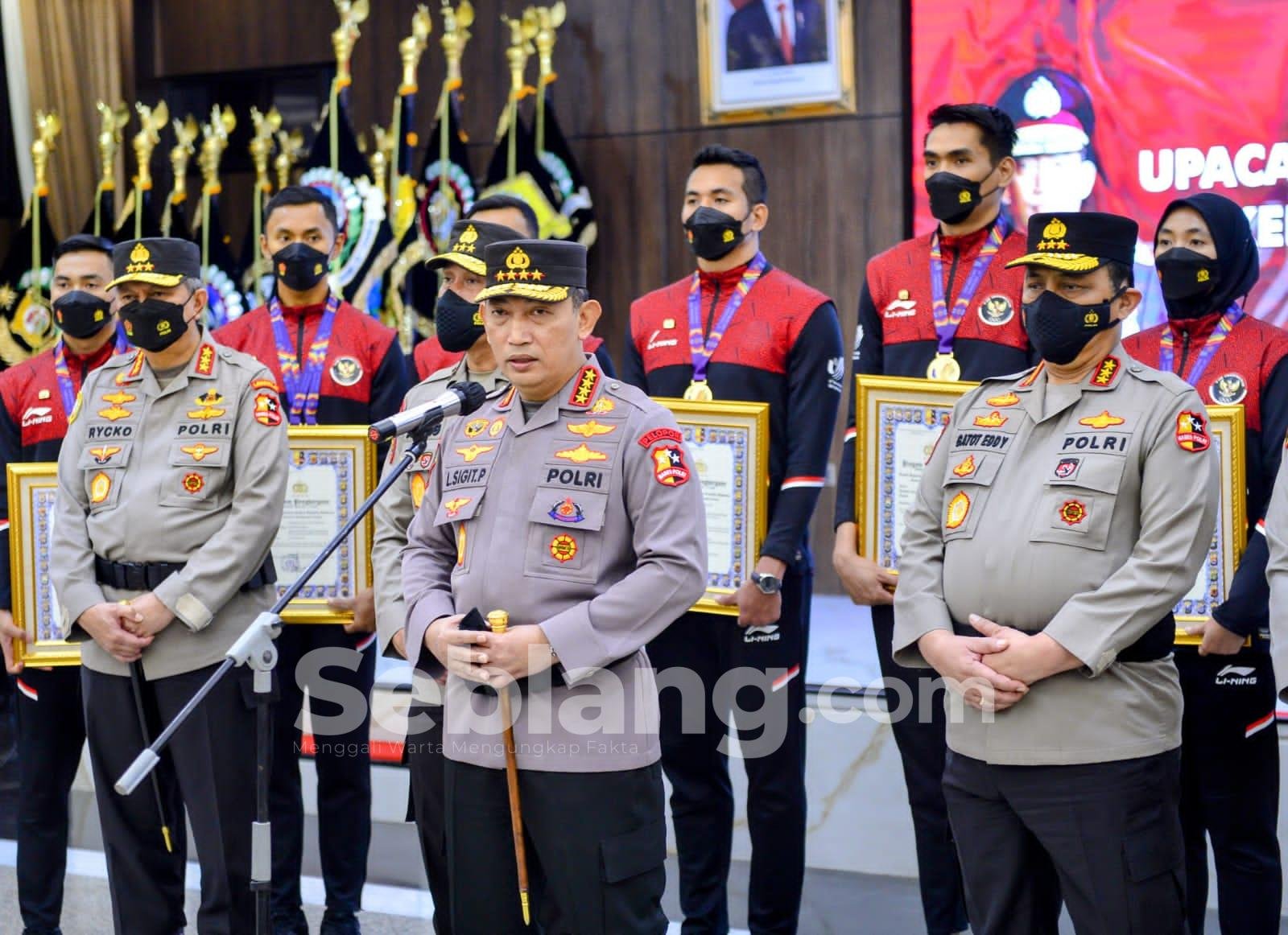 Jakarta, seblang.com – Kapolri Jenderal Listyo Sigit Prabowo memberikan penghargaan sebagai bentuk apresiasi kepada personel Polri sebagai atlet yang telah menyumbangkan medali emas, perak dan perunggu untuk Indonesia dalam perhelatan Sea Games Vietnam.