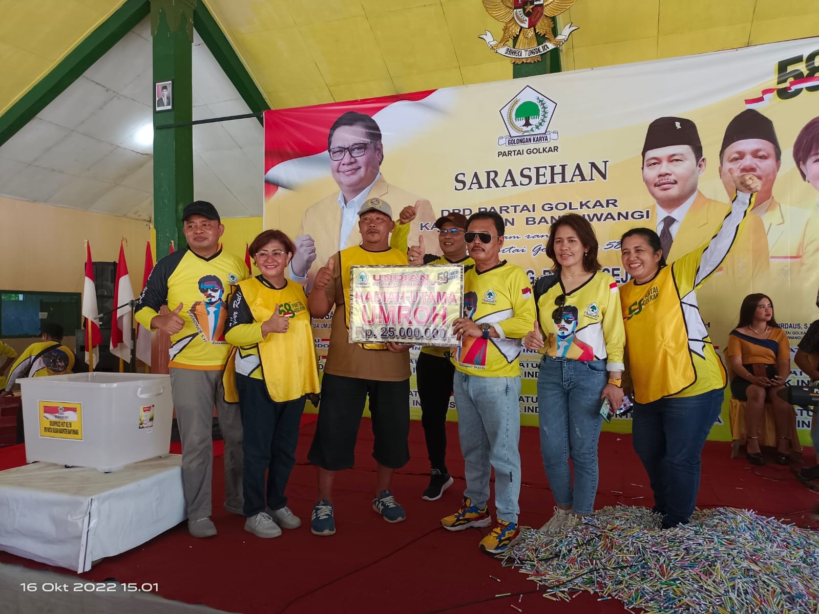 Hadiah hiburan dan door prize yang disiapkan panitia HUT Partai Golkar Banyuwangi berbagai hadiah menarik antara lain; 100 kompor gas, 100 kipas angin, 50 magic jar, 150 setrika, 100 blender, kulkas, sepeda gunung, hingga televisi.