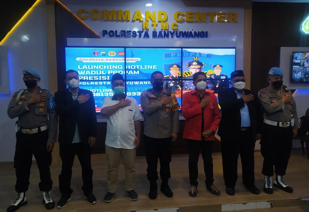 Banyuwangi, seblang.com – Kapolresta Banyuwangi Kombes Pol Nasrun Pasaribu S.I.K melaunching program “Hotline Wadul Propram Presisi Polresta Banyuwangi“. Kegiatan launching ini berlangsung di ruang Command Center Mapolresta setempat, Sabtu (9/4/2022).