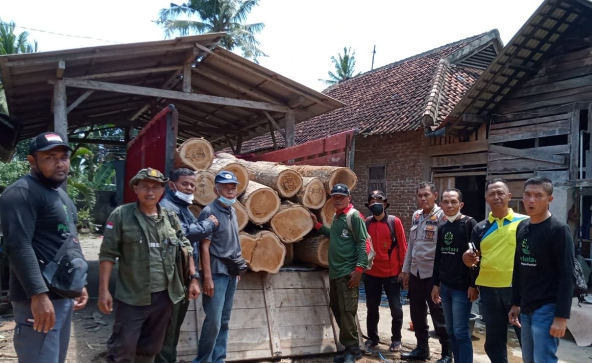 Banyuwangi, seblang.com – Operasi gabungan pengamanan kayu temuan di luar kawasan hutan (TML) Perhutani Banyuwangi Selatan, mengamankan puluhan kayu jati glondongan yang berada di gudang belakang perakangan rumah warga berinsial PN Dusun Silirbaru, Desa Sumberagung, Kecamatan Pesanggaran.