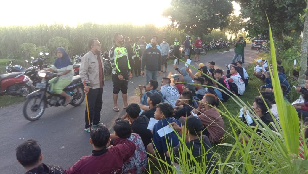 Hal tersebut disampaikan AKBP Boy Jeckson dalam konferensi pers terkait diamankannya 98 motor yang terlibat balap liar di Dusun Trayang Kecamatan Ngronggot pada Rabu (6/4/2022).