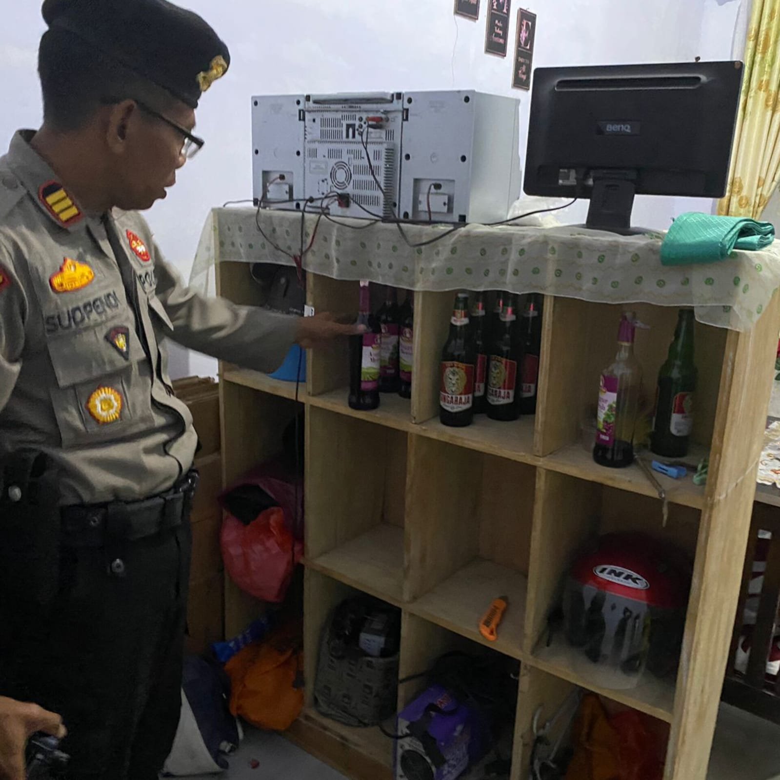 AKP Sudpendi mengatakan, hasil razia kali ini ditemukan 20 botol Minuman Keras (Miras) diantaranya, 9 botol anggur merah, 7 Botol bir singaraja, 1 botol bir bintang, 2 botol kecil arak dan 1 botol besar arak.