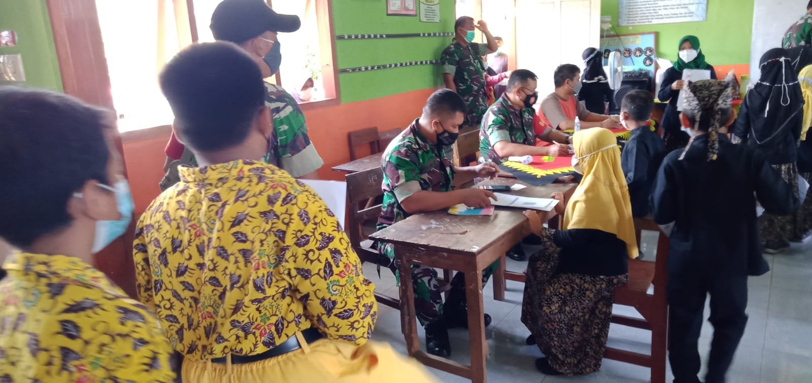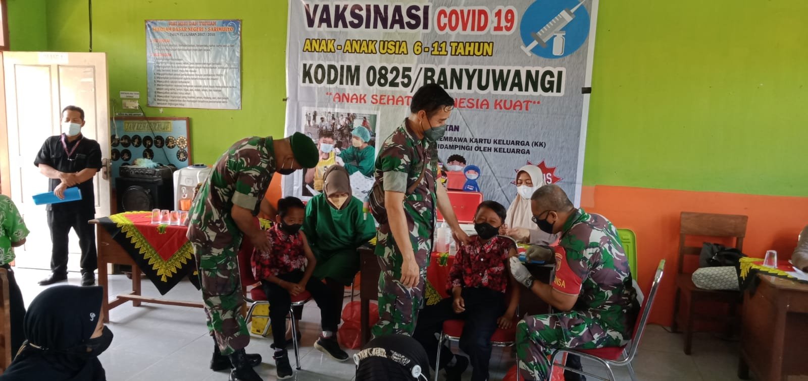 Banyuwangi, seblang.com – Dalam rangka percepatan vaksinasi di Kabupaten Banyuwangi Jawa Timur, Kodim 0825 melalui Koramil 0825/07 Cluring melaksanakan vaksinasi anak usia 6 sampai 11 Tahun di SDN 3 Sarimulyo, Kecamatan Cluring, Kamis (02/02/2022).