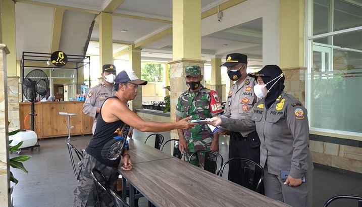 Setidaknya 20 personel gabungan yang turun pagi ini menghimbau masyarakat yang berada di lokasi tersebut untuk menggunakan masker dan mematuhi protokol kesehatan 5M.