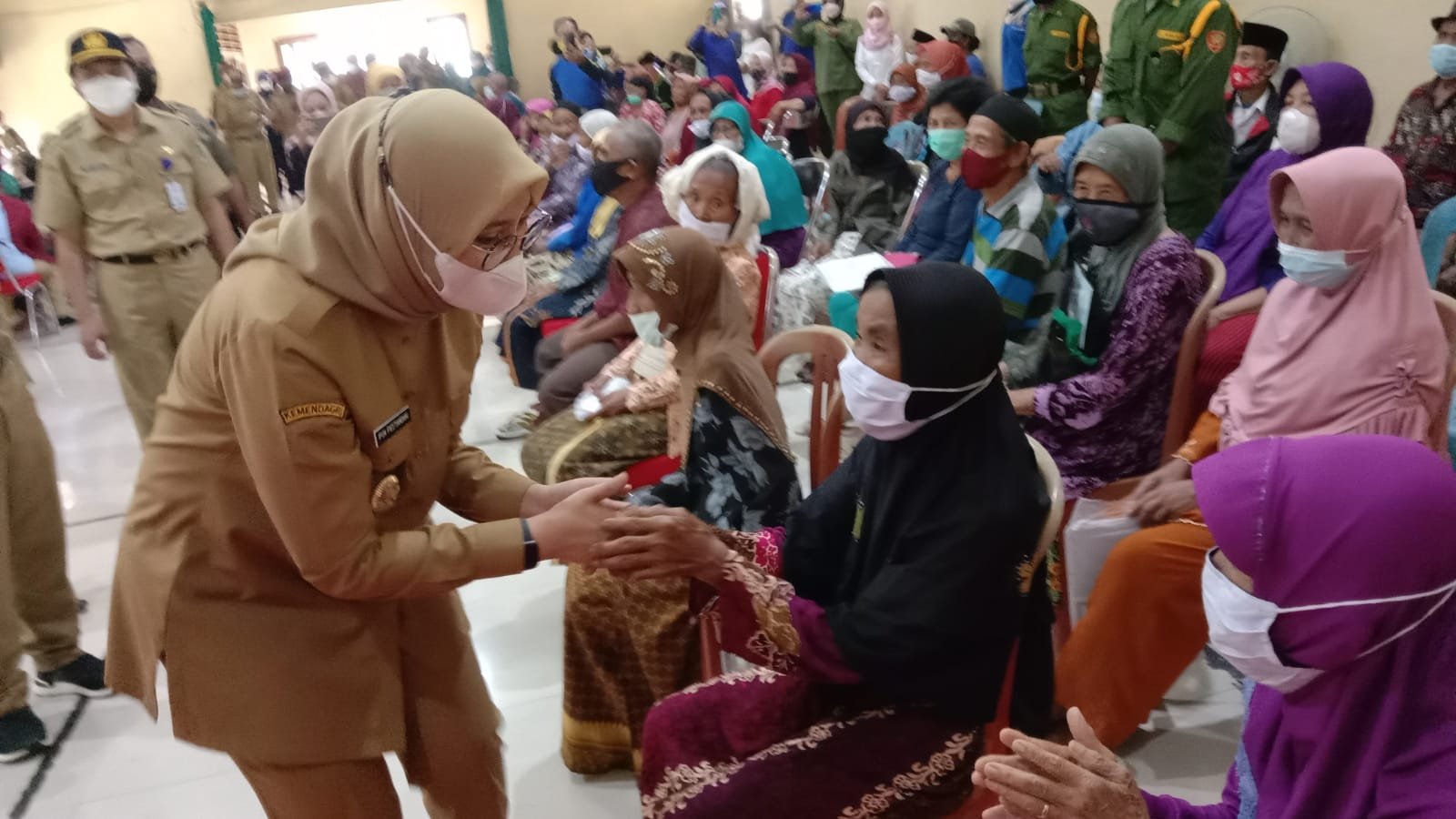 Banyuwangi, seblang.com – Bupati Banyuwangi Ipuk Fiestiandani menghadiri kegiatan Vaksinasi Lansia dalam rangka peringatan Hari Ulang Tahun (HUT) Satpol PP, Perlindungan Masyarakat (Linmas) dan Pemadam Kebakaran di Wilayah Kecamatan Glagah Banyuwangi pada Selasa (08/03/2022)