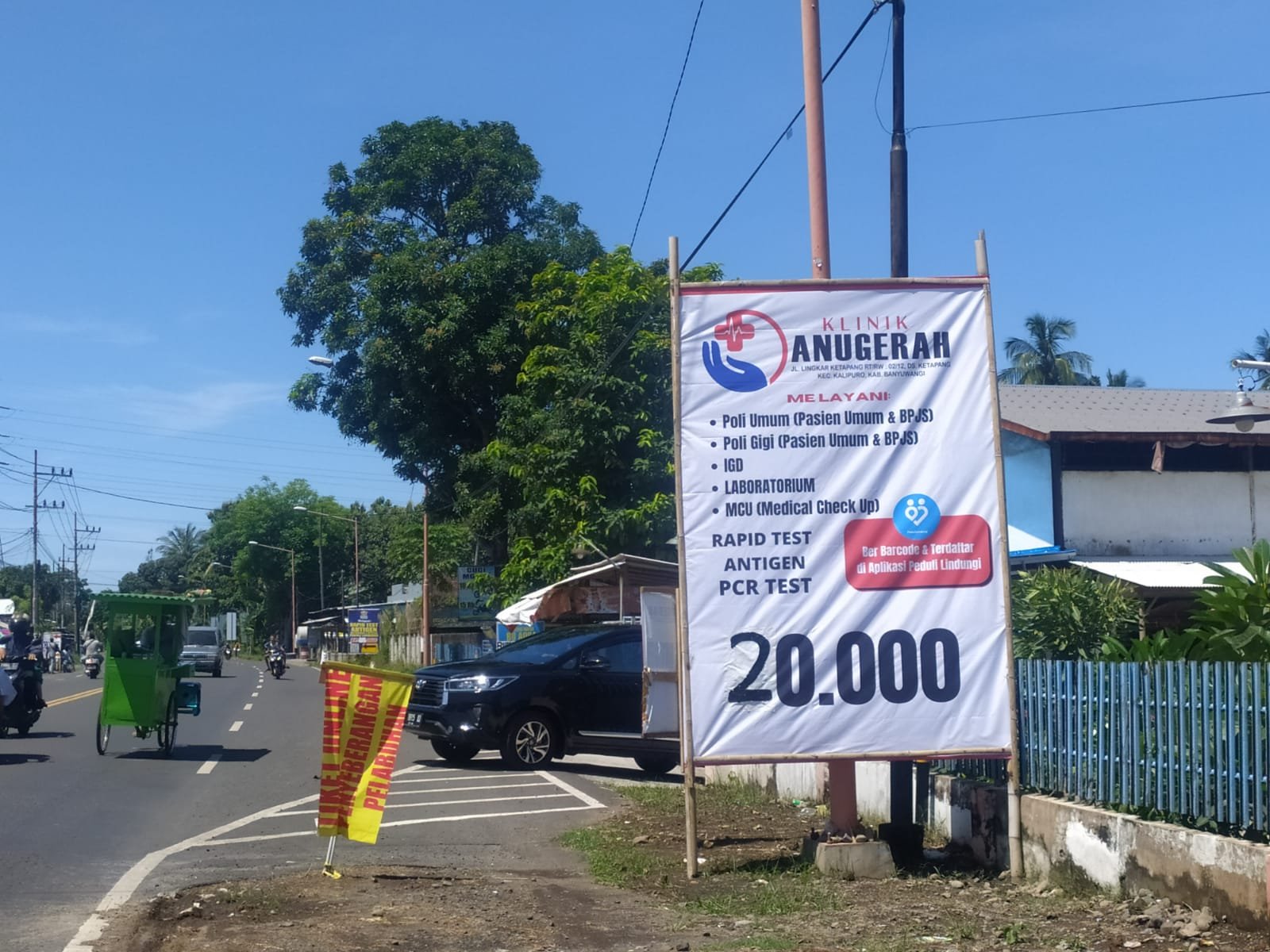 Dari spanduk sampai baliho yang dipasang di depan klinik, harga swab test antigen terpampang mulai dari Rp 30 ribu hingga Rp 20 ribu.